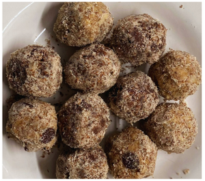 "The peanut butter ball is dangerous! Tastes like cookie dough, but good for you!"